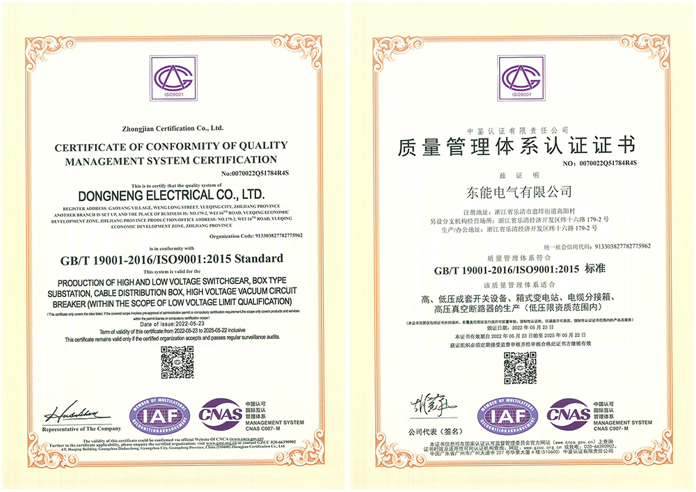 公司具備專(zhuān)業(yè)的現(xiàn)代化生產(chǎn)車(chē)間, 擁有雄厚的技術(shù)力量、精湛的生產(chǎn)設(shè)備、先進(jìn)的工藝水平、嚴(yán)格的管理手段。公司通過(guò)ISO9001質(zhì)量管理體系、ISO14001環(huán)境管理體系、ISO45001職業(yè)健康安全管理體系,并通過(guò)國(guó)家權(quán)威認(rèn)證機(jī)構(gòu)的各類(lèi)型式試驗(yàn)及CCC、CQC認(rèn)證,為客戶(hù)提供高質(zhì)量產(chǎn)品以及優(yōu)秀的全面服務(wù)。