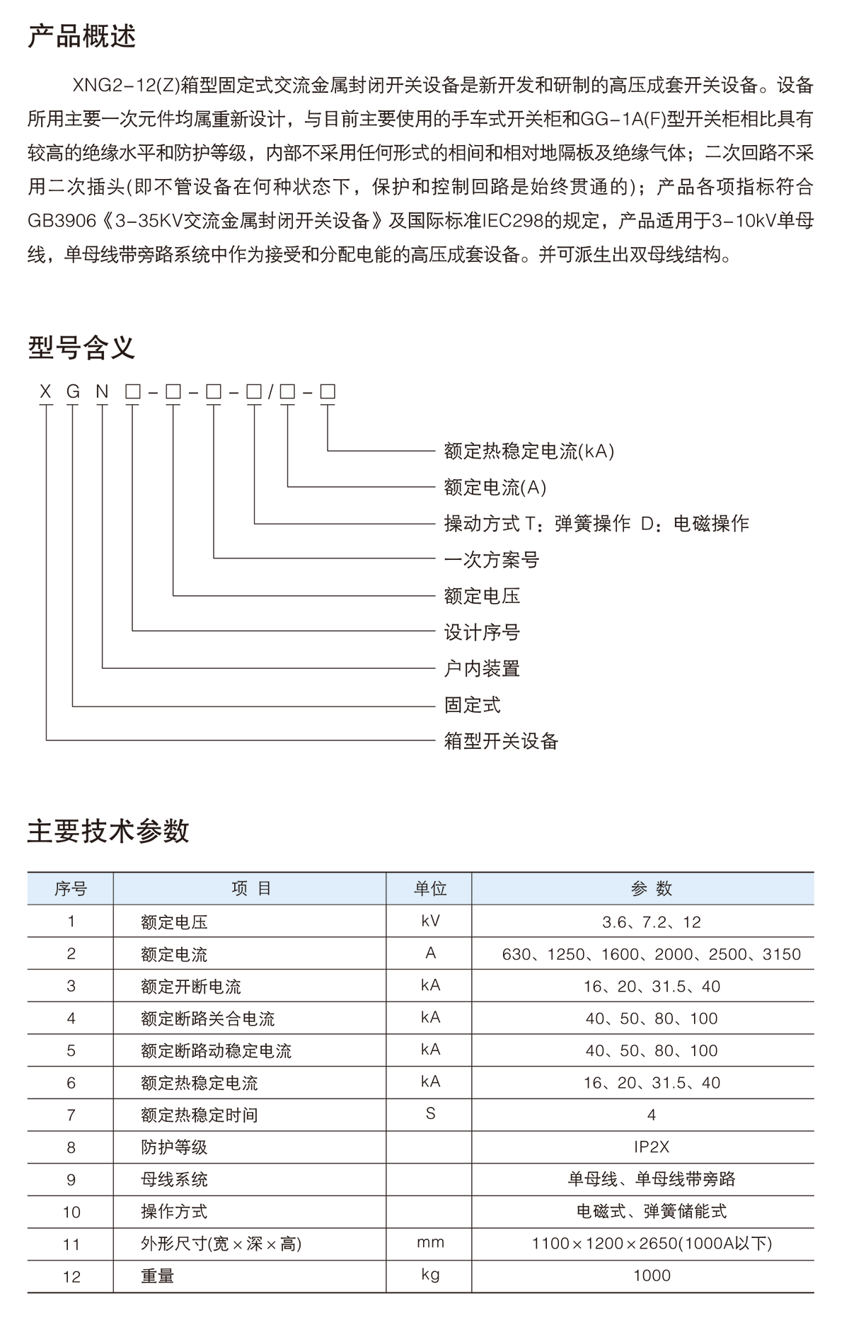 • XGN2-12(Z)箱型固定式交流金屬封閉開(kāi)關(guān)設(shè)備