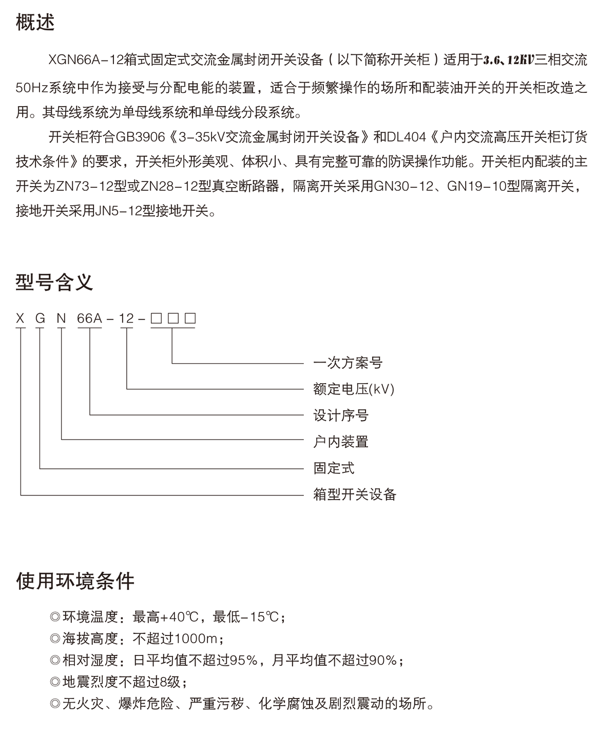 • XGN66A-12箱式固定式交流金屬封閉開(kāi)關(guān)設(shè)備