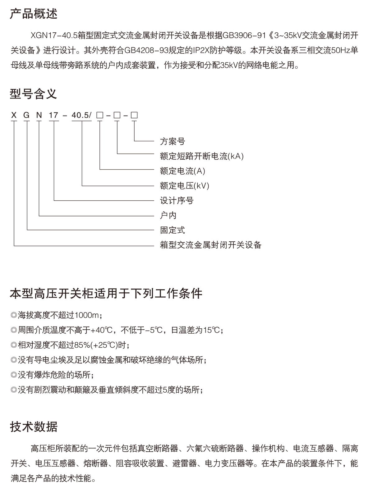 XGN 17-40.5箱型固定式交流金屬封閉開關(guān)設(shè)備