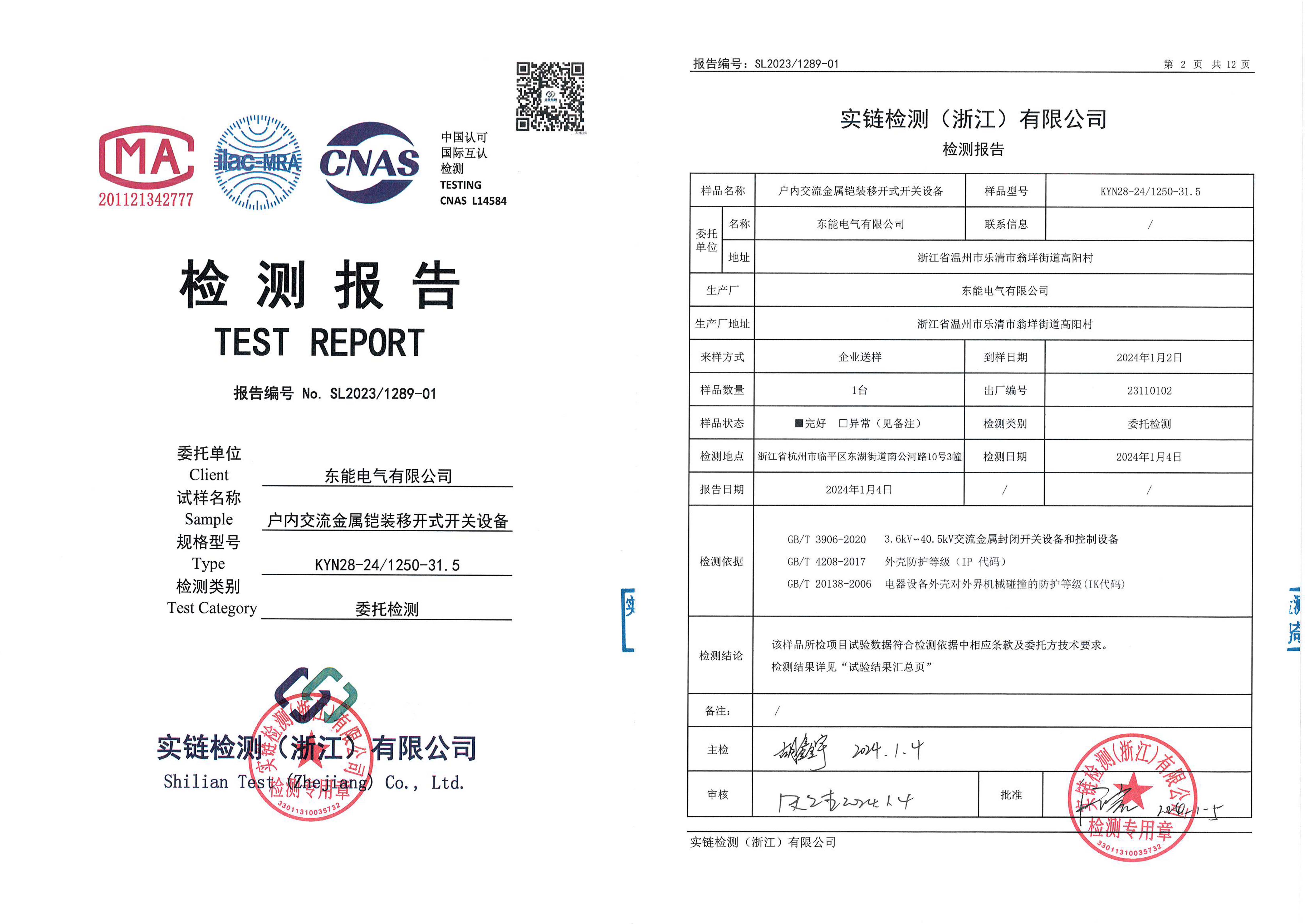 KYN28A-12戶內(nèi)鎧裝金屬移開式開關(guān)設(shè)備檢驗報告